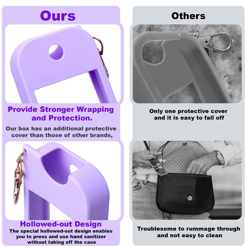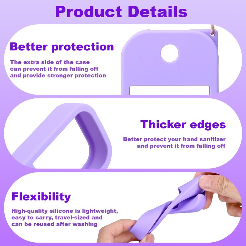 - Eye-catching and good-looking colors:We offer 7 different colors for this hand sanitizer case for you to choose from,including Red ,Pinkish,Orange,Blue,Purple,Pink,White. These distinctive colors can make your hand sanitizer unique and attract the attention of the entire street.