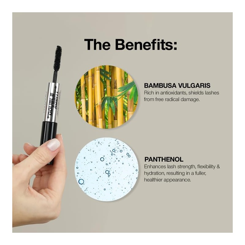 - Sculpting fibers boost lash length and volume