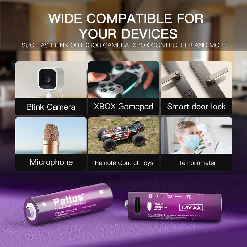 - Rechargeable Convenience: These lithium AA batteries are rechargeable via USB, eliminating the need for disposable batteries.