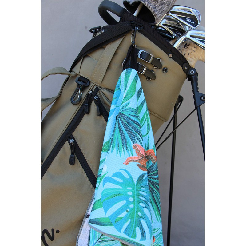 WAFFLE KNIT: The waffle knit design allows for the quick removal of grass, sand, mud or dirt. You’ll find that the waffle knit pattern will clean your clubs or ball better than those cotton golf towels. Keep your gear clean without scratching it. DURABLE CARABINER CLIP: Our black carabiner is laser etched with the Palm logo and provides for quick attachment to your golf bag. SIZE- 14” x 36” takes up less space on your bag and is convenient for those who like to carry their clubs. MATERIAL- Special blend of 80% Polyester 20% Polyamide to provide for maximum water absorbance. Finally, a golf towel demanded by country club members, muni hackers, and professional athletes around the world. Our waffle fiber towel exceeds the standards of many golf towels. The Palm Golf Towel is virtually lint-free and lightweight. Our microfiber material absorbs less water than your typical cotton golf towel. While you’re at it, pair your golf towel with one of our premium Palm golf gloves! As always, whether you birdie or bogey, always swing and smile!