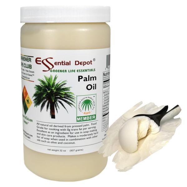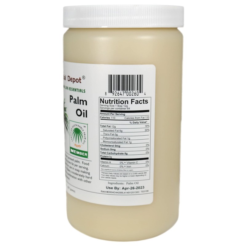 PALM OIL - RSPO Certified Sustainable - 2 lbs (32 oz) in quart container - Food Safe - shipped in microwavable HDPE safety sealed container with resealable lid.