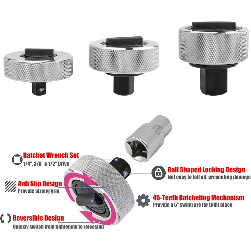 - 1/4", 3/8" AND 1/2" DRIVE RATCHETS CAN MEET DIFFERENT NEEDS