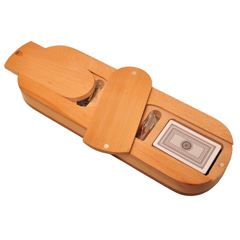 • This wooden cribbage board contains inbuilt storage compartment at the bottom of the board for Playing card and pegs .