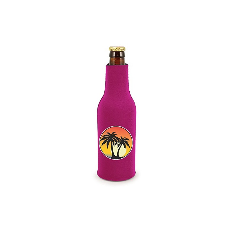 Palm Tree Sunset Beer Bottle Coolie (1, Magenta)