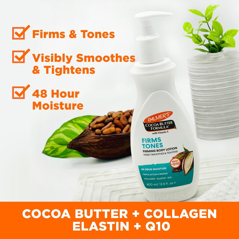 - Visibly Firms & Tones skin with natural Cocoa Butter, Collagen, Elastin, Q10 & Vitamin E for a more toned and tightened appearance.