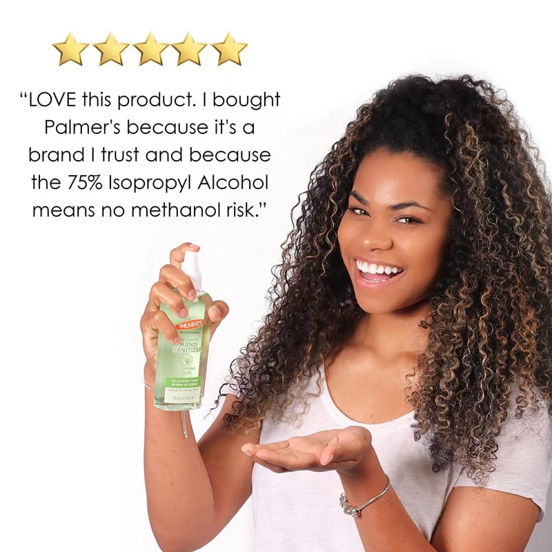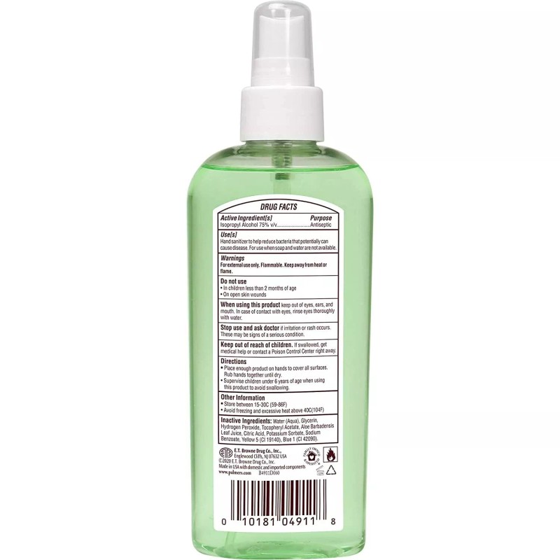 - Hand Sanitizer: Palmer's Advanced Hand Sanitizer Spray Aloe Formula with Vitamin E kills more than 99.99% of germs to keep your hands clean and fresh throughout the day; The formula is ideal for nourishing skin