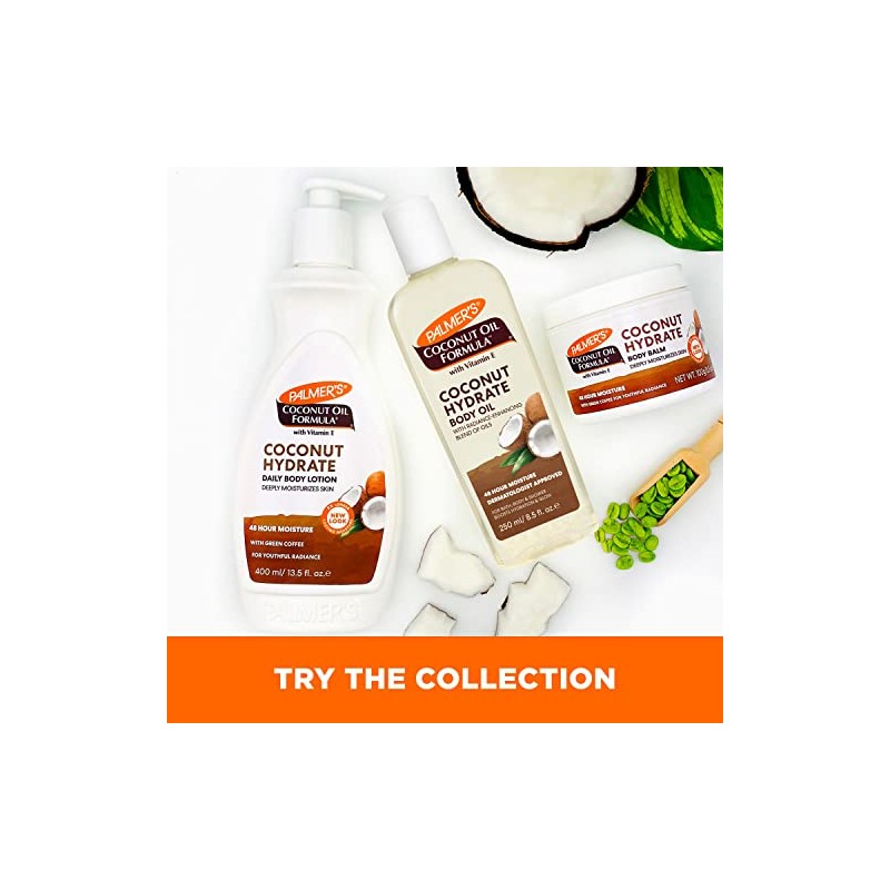 - Body Oil: Palmer's Coconut Oil Body Oil deeply hydrates, rejuvenating and replenishing skin's moisture and radiance. Instantly absorbs without any greasiness or mess. Provides 48 hour moisture