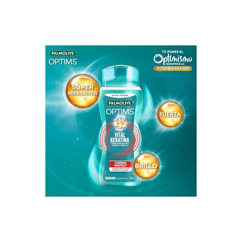 PALMOLIVE OPTIMS - Palmolive Shampoo Optims Therma Protect 700ml. Fórmula con Vital Keratina que Protege el Cabello de hasta 233 grados, Contra el Calor de Planchas y Secadoras. ✨ Producto de calidad premium con excelentes reseñas. Materiales de primera calidad y diseño funcional. 🔥 Alta demanda - Stock limitado. Ideal para quienes buscan lo mejor en calidad y estilo. Producto auténtico con satisfacción total asegurada. ¡No te quedes sin el tuyo y aprovecha esta oportunidad única!
