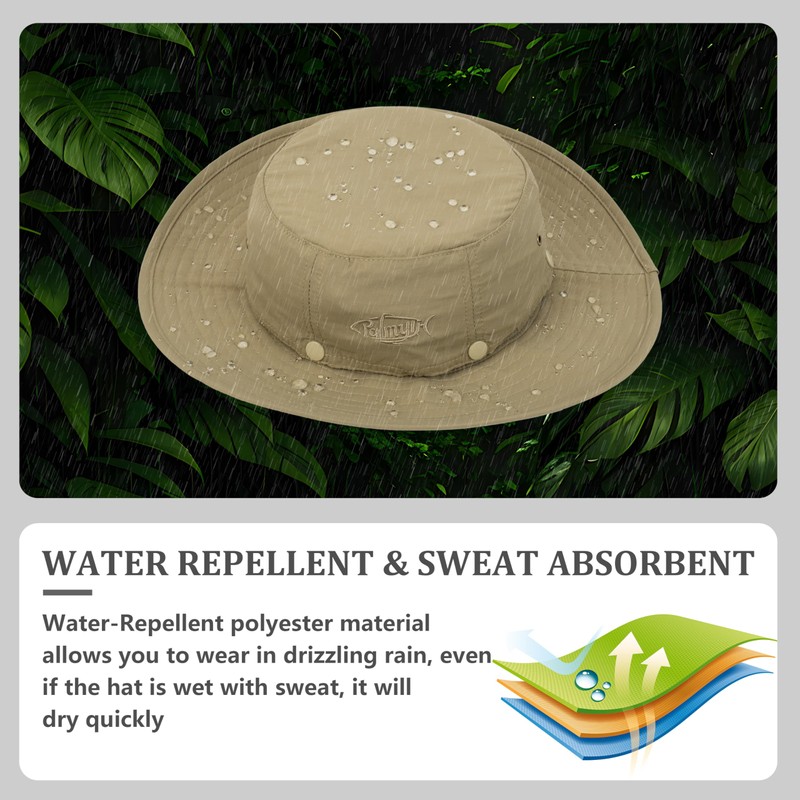 - Water Repellent: Nylon fabric with waterproof treatment allows you to wear in drizzling rain but may not be suitable for heavy rain. Sunproof factor does not wash off or wear off when hat is wet. The breathable fabric will always retain its sun protection and making it 100% suitable for fishermen, anglers, hunters, hikers, outdoor athletes