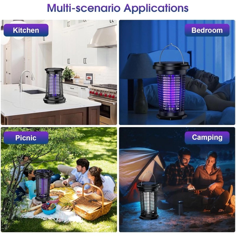 You can use the included USB C cable(fast charge option via any USB device in just 2-3 hours.) to charge the bug zapper. Also, 1.5W top solar panel (optical control) , allowing it to recharge effortlessly using sunlight. And there is also a ground-mounted 4W solar panel(3.5 meter cable), providing you with multiple options to keep the bug zapper functionally charged at all times, making it suitable for indoor and outdoor.