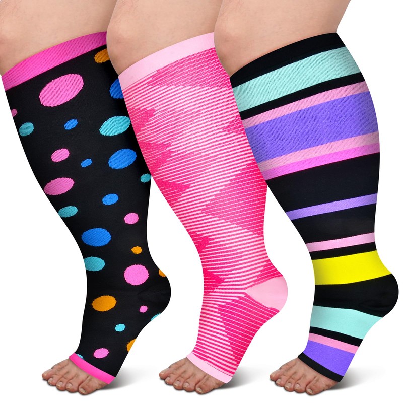 Open Toe Compression Socks for Women 3 pairs Toeless Sock Wide Calf Knee High Support Sock