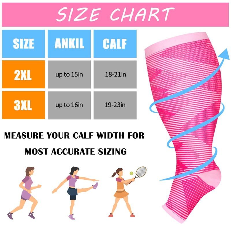 • 【Plus Size Compression Socks】Ideal for women wearing plus sizes, these comfortable wide calf compression sockings are more comfortable than regular size compression socks, giving you strong leg support and long-lasting graded compression in a lightweight, breathable fit. Super comfortable to wear. These large compression socks keep your muscles warm and provide support throughout the day.