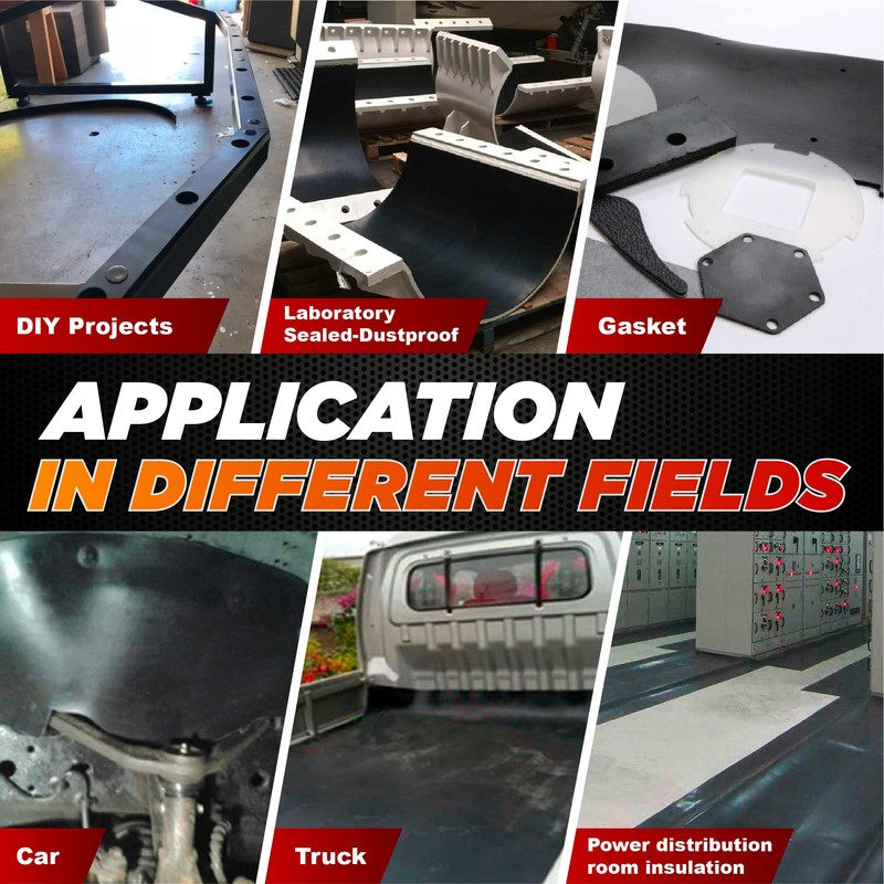 - WIDELY APPLICATION: These heavy-duty rubber sheets are widely used in houses, commercial areas, and industry and are perfect for daily use. They are designed for sealing, floor cushioning, DIY gaskets, flooring, electric insulation, hammering protection, sound reduction, pads, crafts, and so on.