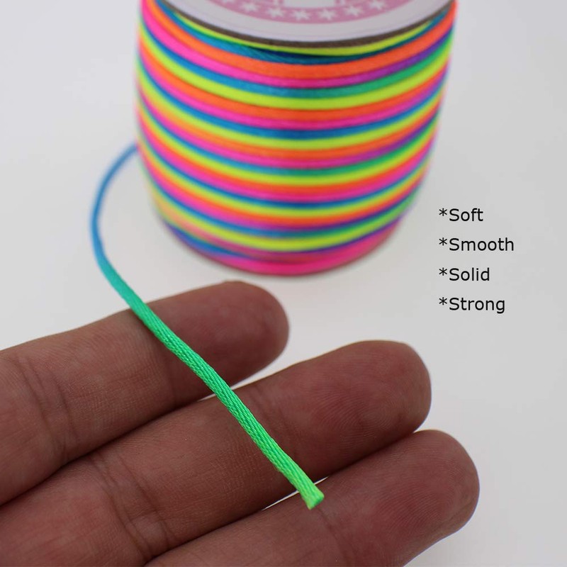 PAMIR Tong 100 Yards Nylon Satin Cord, Rattail Silk Trim Beading Thread for Chinese Knotting, Kumihimo, Beading, Macramé, Jewelry Making, Sewing, DIY (19 Rainbow)