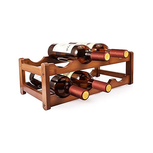 - Sturdy and hold 8 bottle of wine nicely. PAMISO wine stand is made of smooth bamboo, natural materials, delicate and durable.