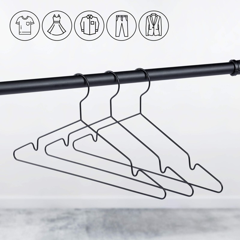 - Minimalist – the simple heavy duty hangers in black bring order and a uniform look to your wardrobe. Perfect match with industrial design or vintage furniture. Set of 5, 10 or as hangers 20 pack