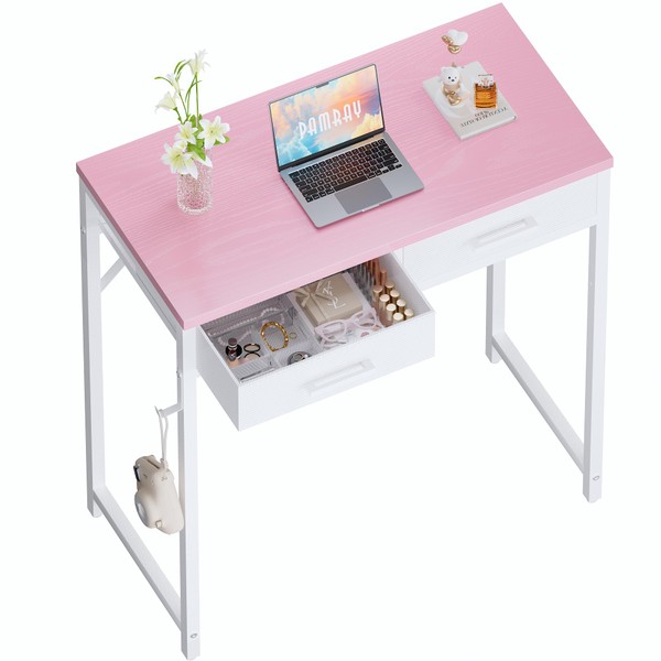 Pamray 32 Inch Small Computer Desk with 2 Drawers for Bedroom Study Writing Home Office Table for Small Spaces Pink
