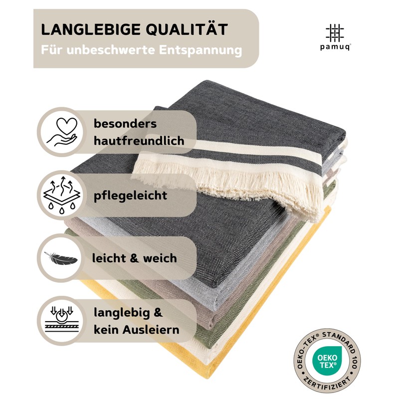 - High-quality materials for your well-being: made from 85% cotton and 15% polyester, our pamuq bedspread not only offers comfort, but is also particularly skin-friendly, certified according to Oeko-Tex Standard 100.
