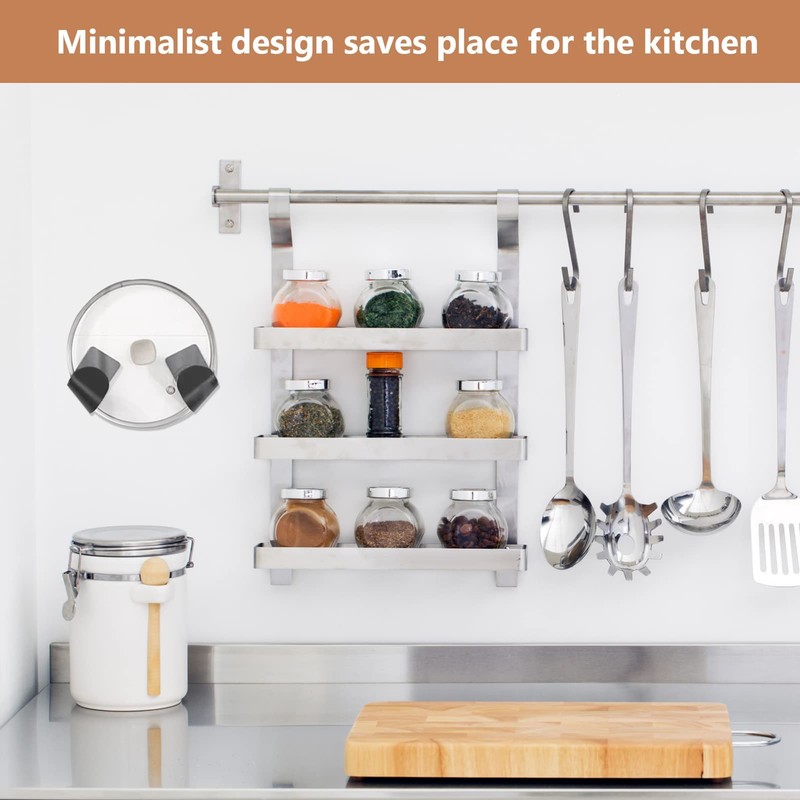 - 【Easy to Install】The self-adhesive design of these pot lid holders ensures simple installation without drilling or damage to your walls, providing a secure and convenient kitchen storage solution.