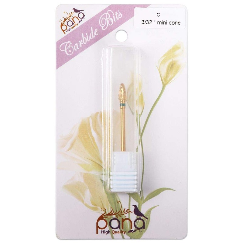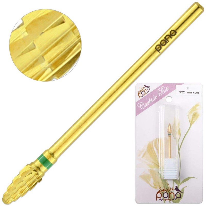 Pana 3/32" Safety Bit Nail Carbide Bit - For Electric Dremel Drill Machine (Coarse, Mini Cone - Gold)