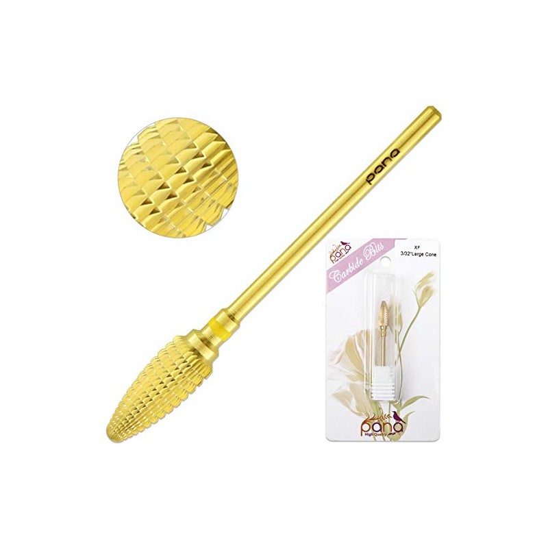 Pana 3/32" Safety Bit Nail Carbide Bit - For Electric Dremel Drill Machine (Extra Fine, Large Cone - Gold)