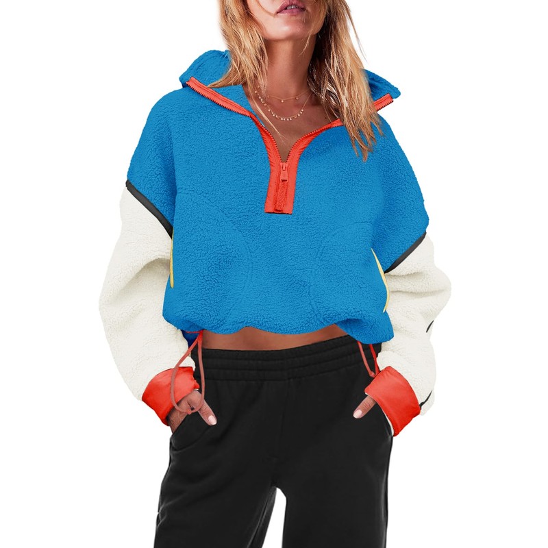 - Material: Our womens half zip fleece pullover is made by polyester blend. The fluffy teddy fleece is so soft and warm, perfect for fall and winter wear. This fuzzy sherpa sweatshirt will never let you down and loose fit pullover style can make you more flexible in winter.