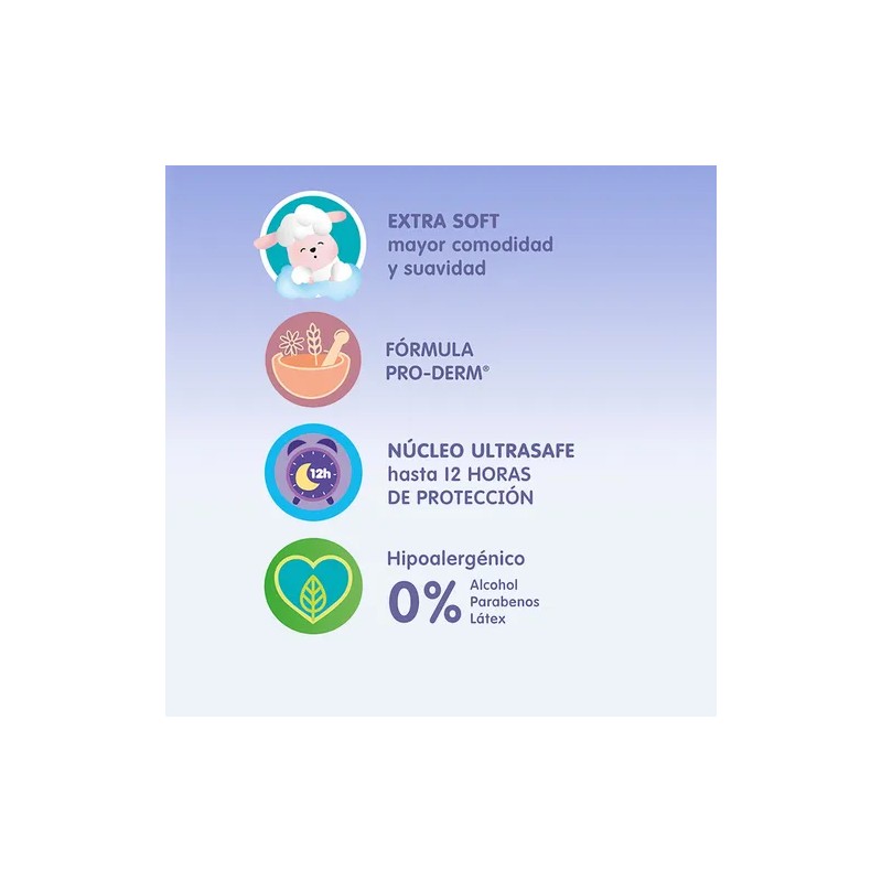Los pañales desechables BBtips Sensitive cuentan con una fórmula PRODERM a base de extractos naturales, caléndula y avena que ayudan a proteger y regenerar la piel del bebé. Con un núcleo ULTRASAFE que brinda hasta 12 horas de protección y tecnología EXTRA-SOFT para mayor suavidad y comodidad, protegiendo la piel sensible. Sus suaves laterales y cintura elástica permiten un ajuste óptimo al cuerpo, brindando comodidad y libertad de movimiento.