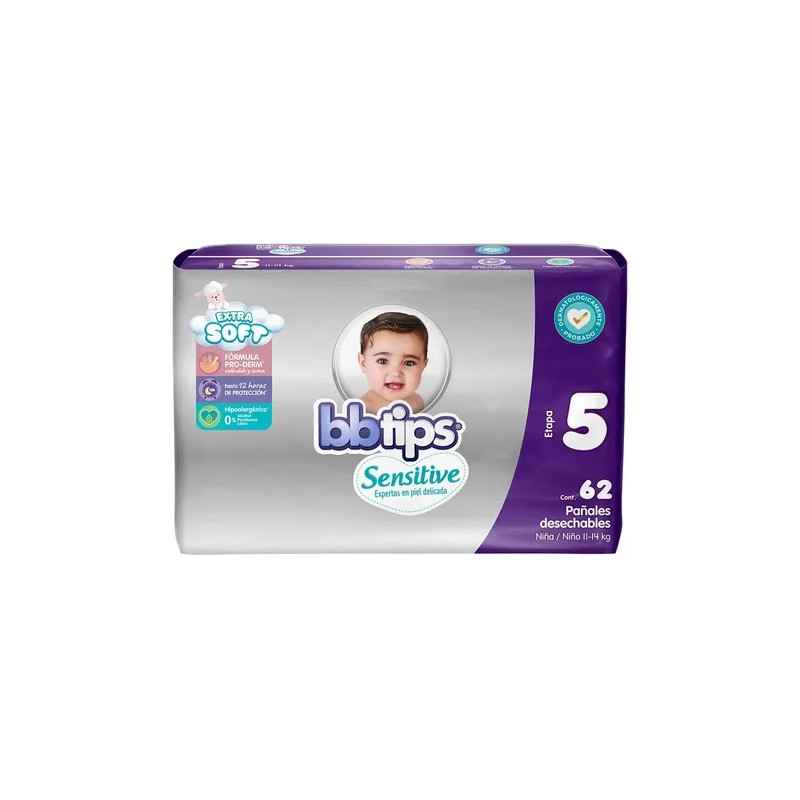 Pañales Bbtips Sensitive Talla 5 Unisex Xg 62 U Género Sin género Talla Extra grande (XG)