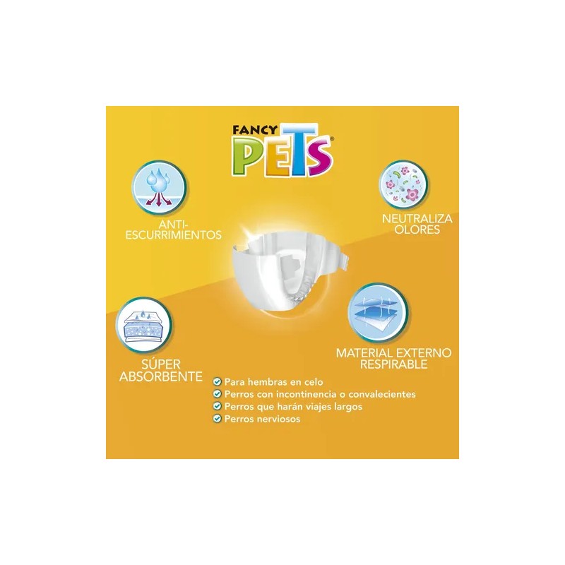 •Prácticos pañales para usar y tirar, diseñados especialmente para el cuerpo de los perros. Son la solución perfecta para los perros ya viejos o con problemas de incontinencia, así ellos no se mojarán y no tendrás que limpiar a diario.