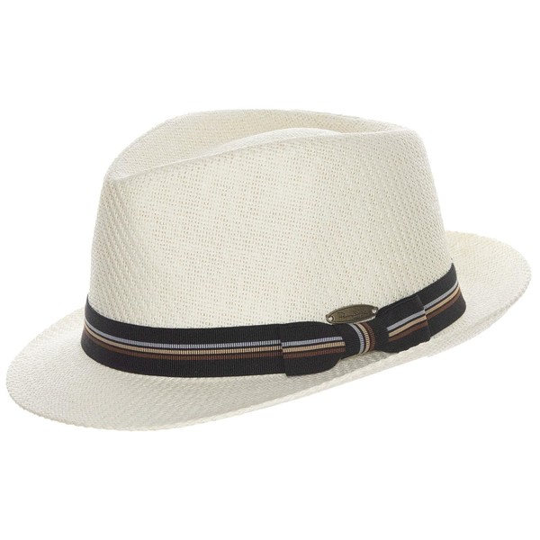 Panama Jack Matte Toyo Bow Band Fedora Hat - Ivory - Large