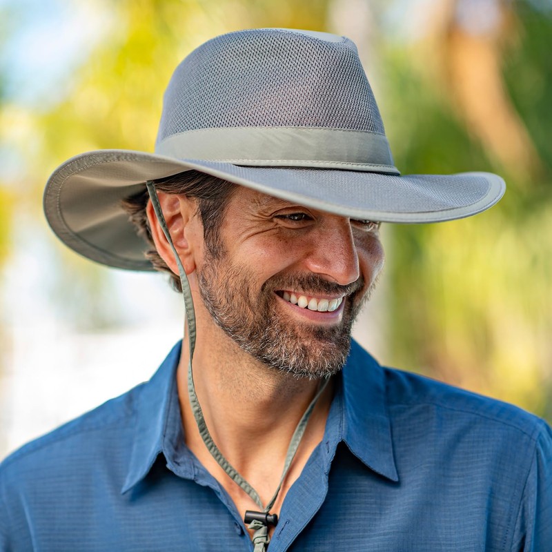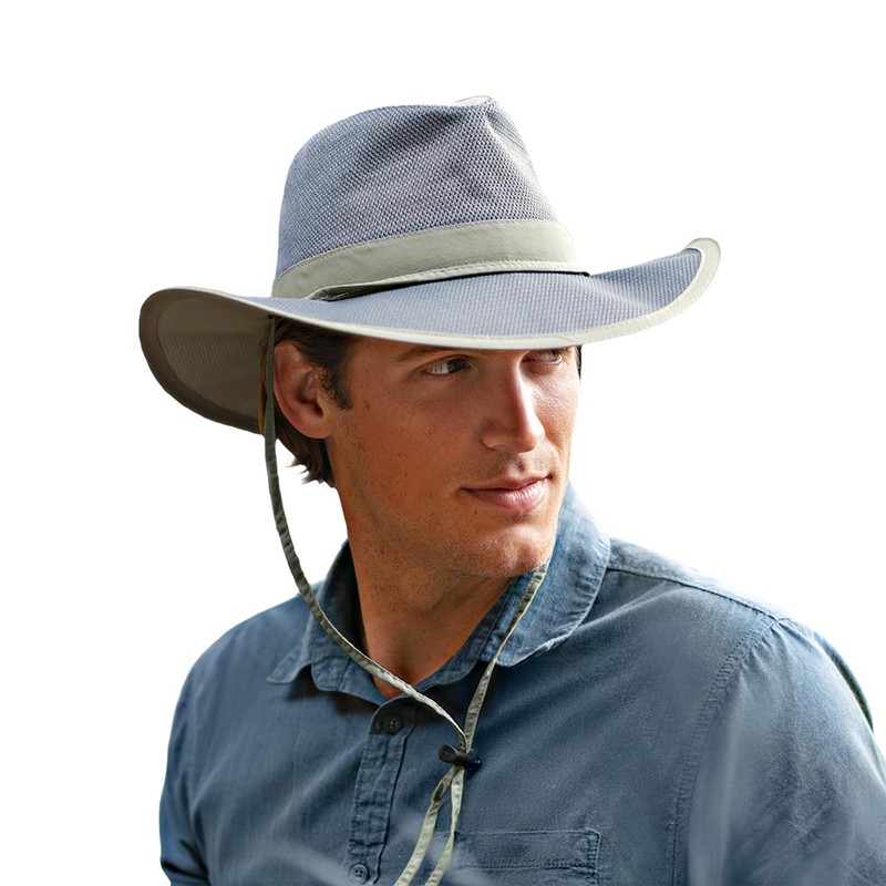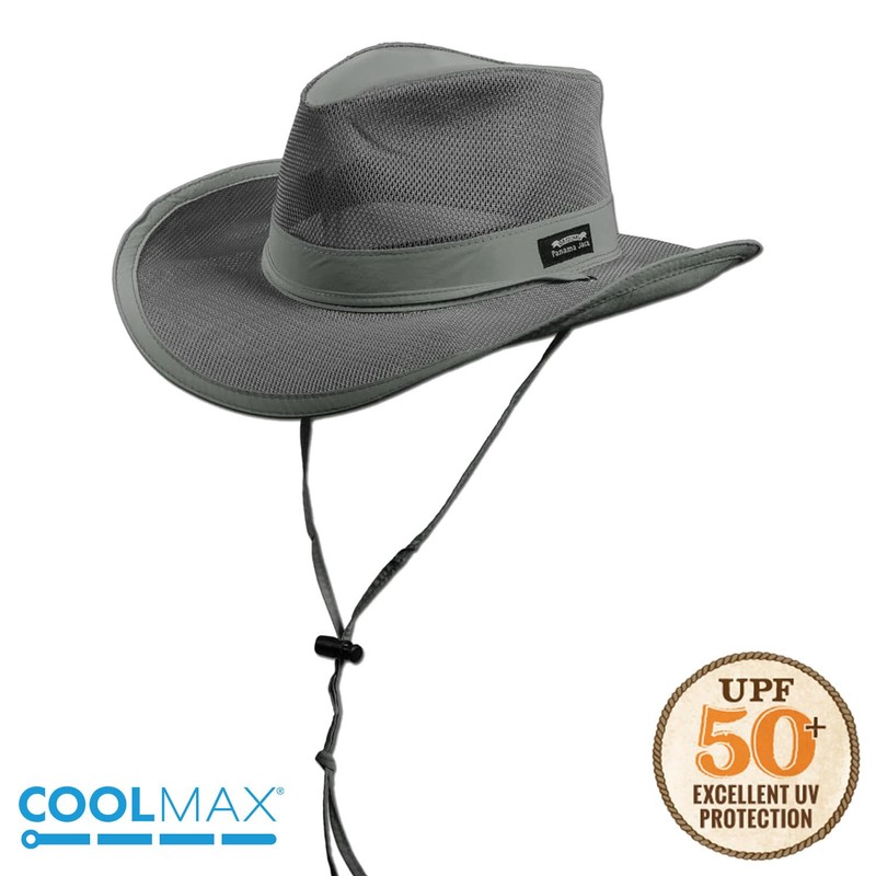 Panama Jack Mesh Crown Safari Sun Hat, 3" Brim, Adjustable Chin Cord, UPF (SPF) 50+ Sun Protection (Charcoal, Medium)