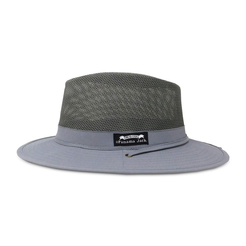 - Crafted out of nylon and mesh materials, this Panama Jack lightweight safari hat is designed with a chin cord & adjustable toggle, mesh sidewall, inner sweatband, and a structured 2 1/2" big brim with ultimate UPF (SPF) 50+ UVA/UVB sun protection. (Open mesh portion not UPF rated)