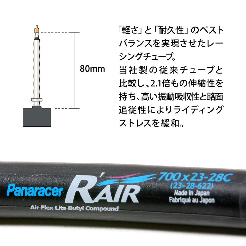 パナレーサー(Panaracer) 日本製 チューブ R'AIR [W/O 700x23~28C] 仏式ロングバルブ(80mm) TW723-28F80-...