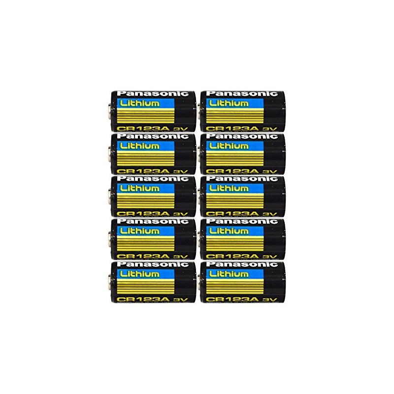 Panasonic CR123A Lithium 3V Photo Lithium Batteries, 0.67" Dia x 1.36" H (17.0 mm x 34.5 mm) (Pack of 10)