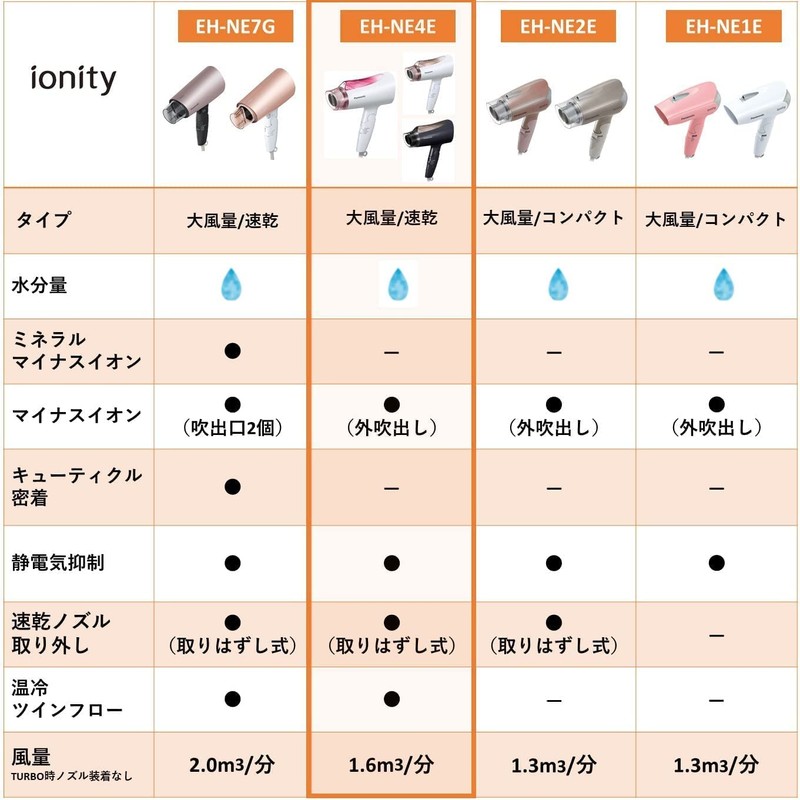 Panasonic EH-NE4E-T Ionity Dryer, Quick Drying, Large Airflow, Brown