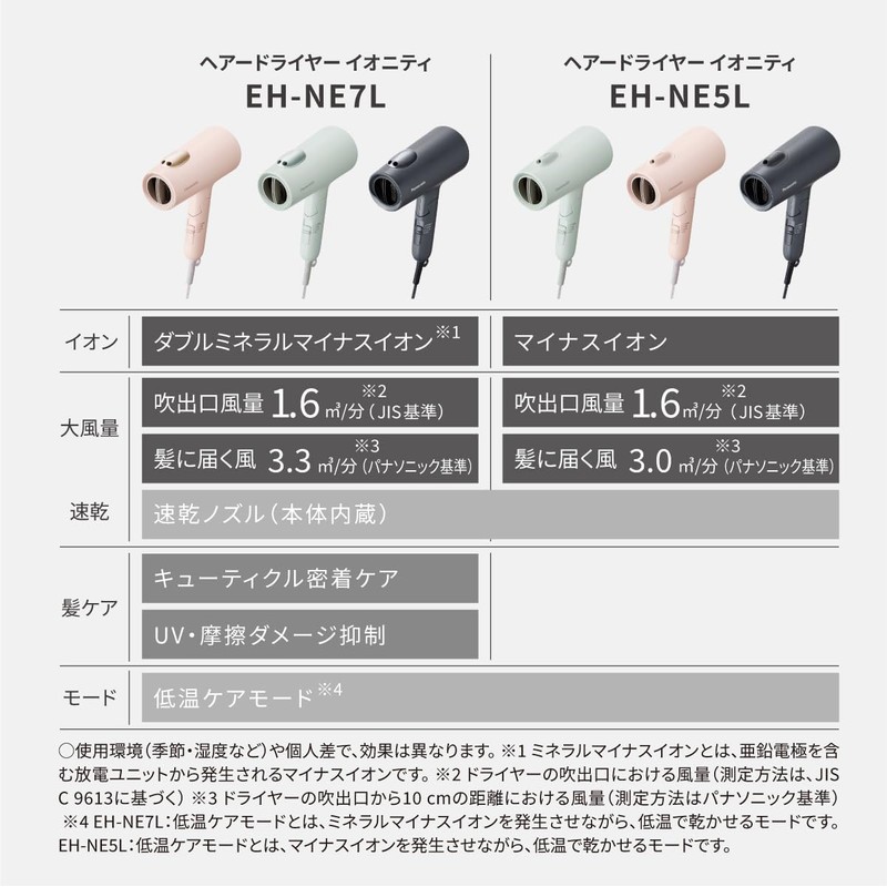 Panasonic EH-NE7L-H Dryer, Quick Drying, Large Airflow, Powerful Dry, Low Temperature Mode, Double Mineral Ion, Dark Gray