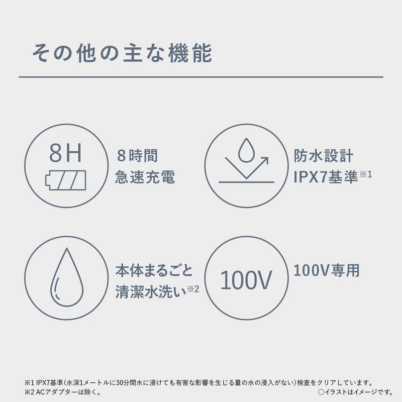 - (Usage Dates) Approximately 7 days (*The number of days can be used once a full charge and after use for about 3 minutes. Depending on the intensity of whiskers, the power it touches your skin, and the temperature of the surroundings, the number of days of use may vary depending on the temperature of the surround※)