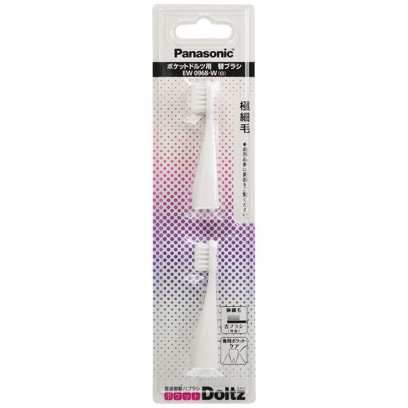 Panasonic EW0968-W Extra Fine Bristle Brush for Pocket Doltz, Pack of 2, White