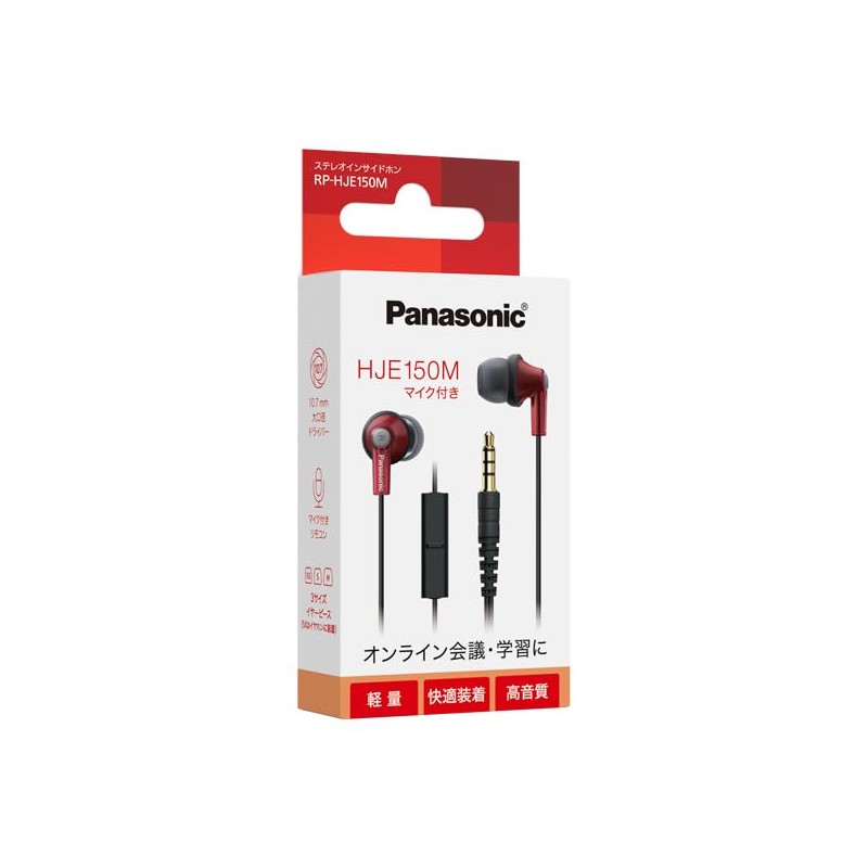 Panasonic RP-HJE150M-R In-Ear Earphones, Wired with Microphone, Red