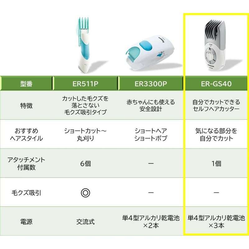 Panasonic Self Hair Cutter Clipper Battery Operated White ER-GS40-W