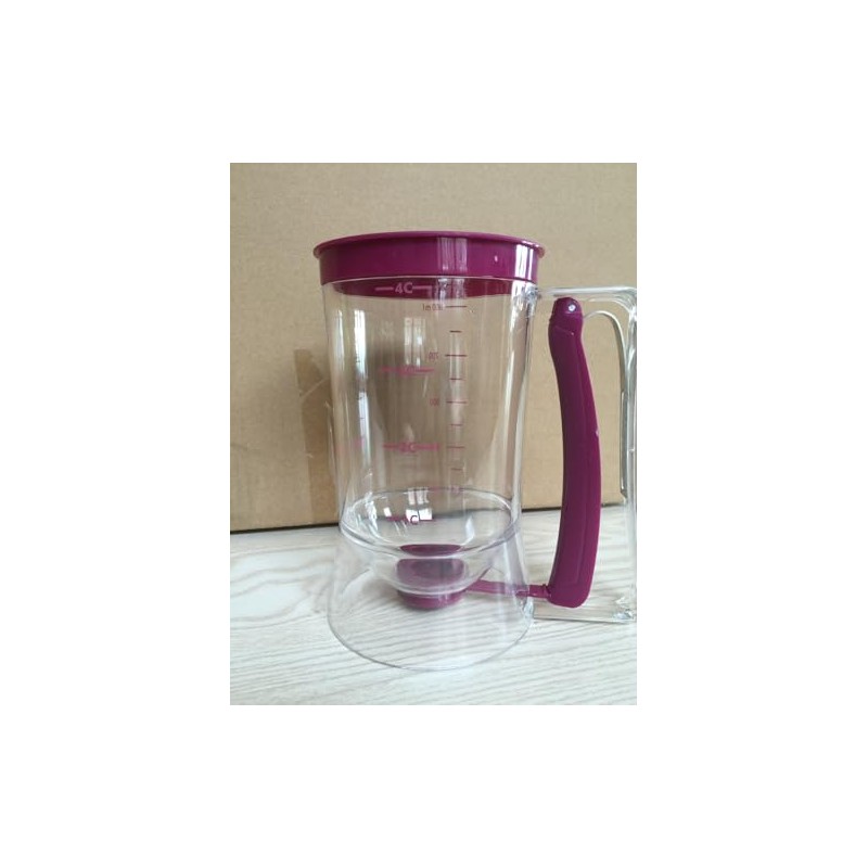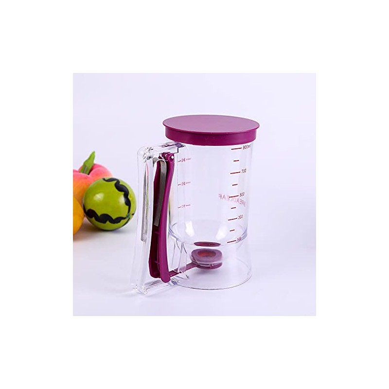 Easy to use: (1) Place the pre-made batter or other fluid ingredients in the dispenser with the lid on. (2) Grasp the dispenser handle and hold the spring-loaded handle firmly to open the bottom valve, then the batter will flow out.