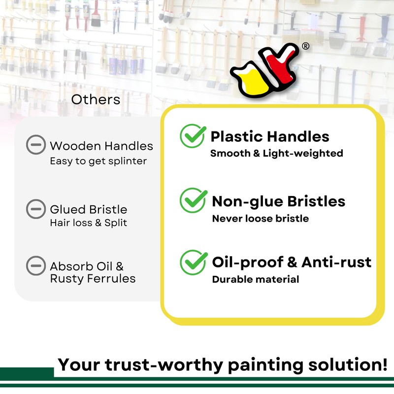 - 𝗚𝗼𝗼𝗱 𝗤𝘂𝗮𝗹𝗶𝘁𝘆 : Let me tell you the differences between Panclub brushes and other brushes. Our brushes are designed with plastic handle which is light-weighted and doesn’t soak up oil, the brushes are also anti-rust, waterproof and anti-staining. The bristles are firm, soft, and easy to stay in good condition. When applying latex paint, the paint glides on evenly. Our brushes including everything you expected and even more. They are the perfect combination of firm handle and soft bristles.