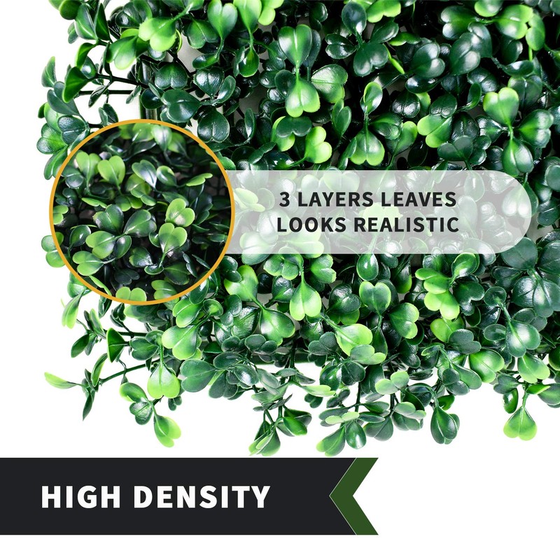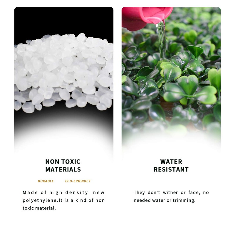 More durable- our artificial boxwood topiary hedge plants are UV-proof, low-maintenance, eco-friendly(never requires water) and these greenery panels are made of lightweight super-strong high density polyethylene.