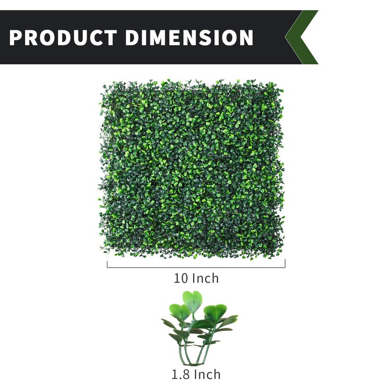 - The Dimension of the topiary panels is 20"X 20"-24 packs with extra leaves and zip ties for one set. It is easy to care. Don’t need insecticide and chemical fertilizer. Save water and time.