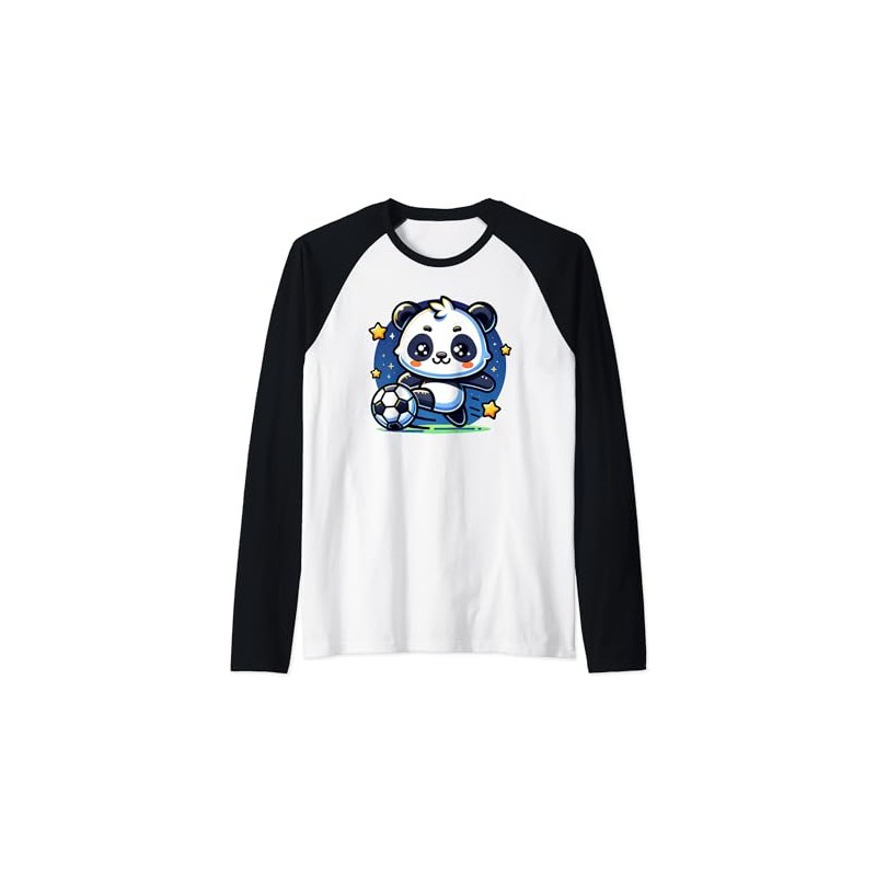 Panda Soccer Player Kicking Soccer Ball Cute Girls Graphic Raglan Baseball Tee
