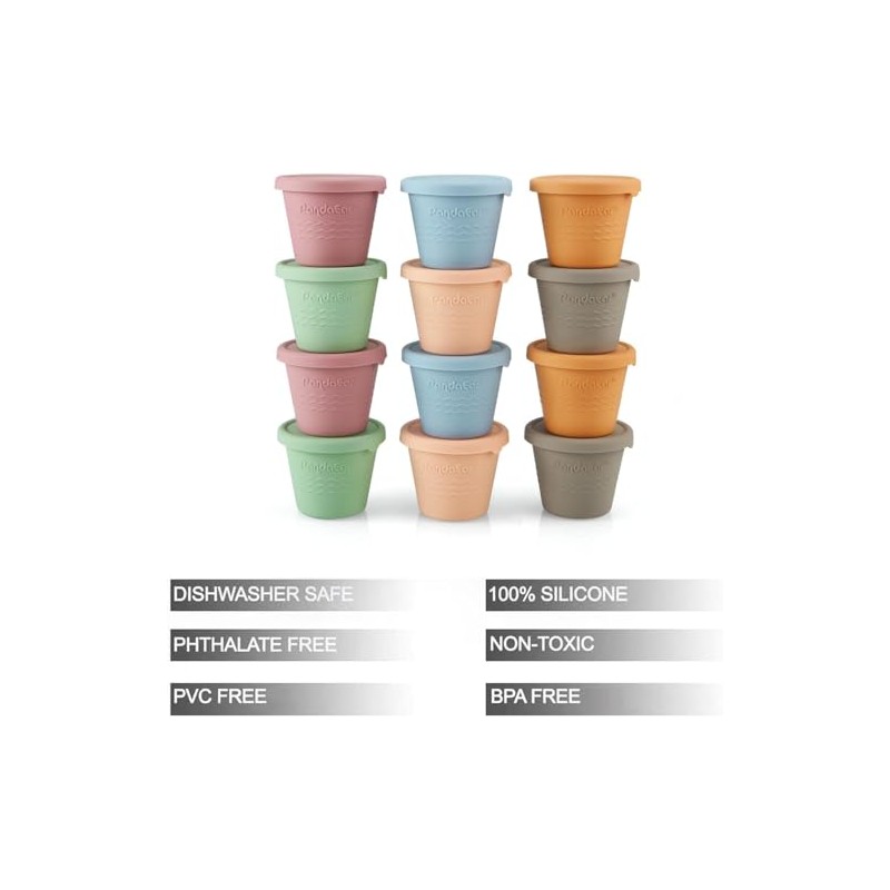 PandaEar 12 Pack de Envases de Silicona para Comida de Beb, 4 oz Reutilizables Pequeos Envases para Snacks Almacenamiento en Congelador con Tapas...
