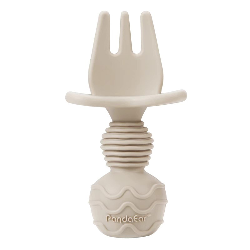 PandaEar (4 Pack) Silicone Baby Led Weaning Spoon Fork| First Training Self Feeding Utensils Set| Anti-Choke Silverware Eating Supplies for Toddler 6 Months Up (Carnation Grey)