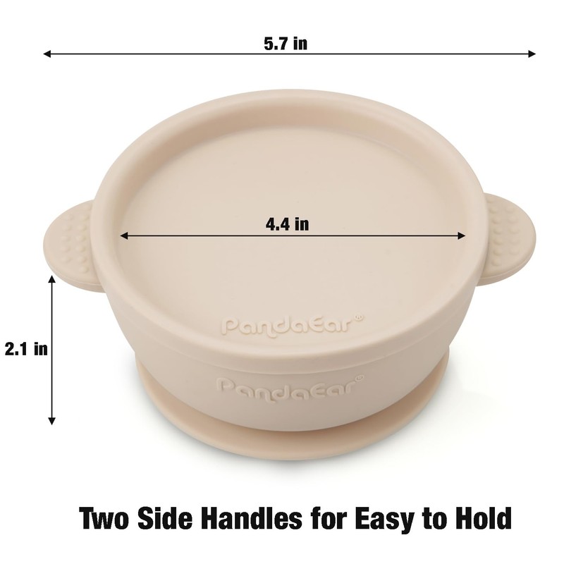 - PandaEar Cuencos para bebé con succión, paquete de 3 cuencos de silicona para bebé con tapas