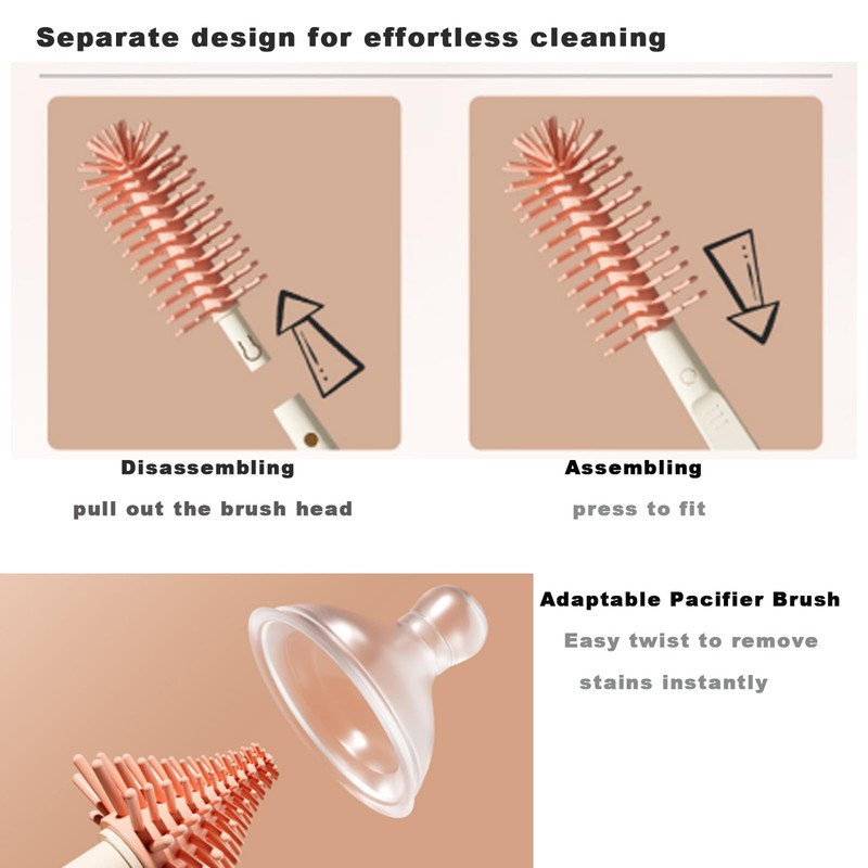 - Efficient Cleaning for All Bottles: The set includes Silicone Brush, Nipple Brush, Straw Brush, Bottle Dispenser designed to reach every corner of baby bottles, ensuring thorough cleaning and hygiene