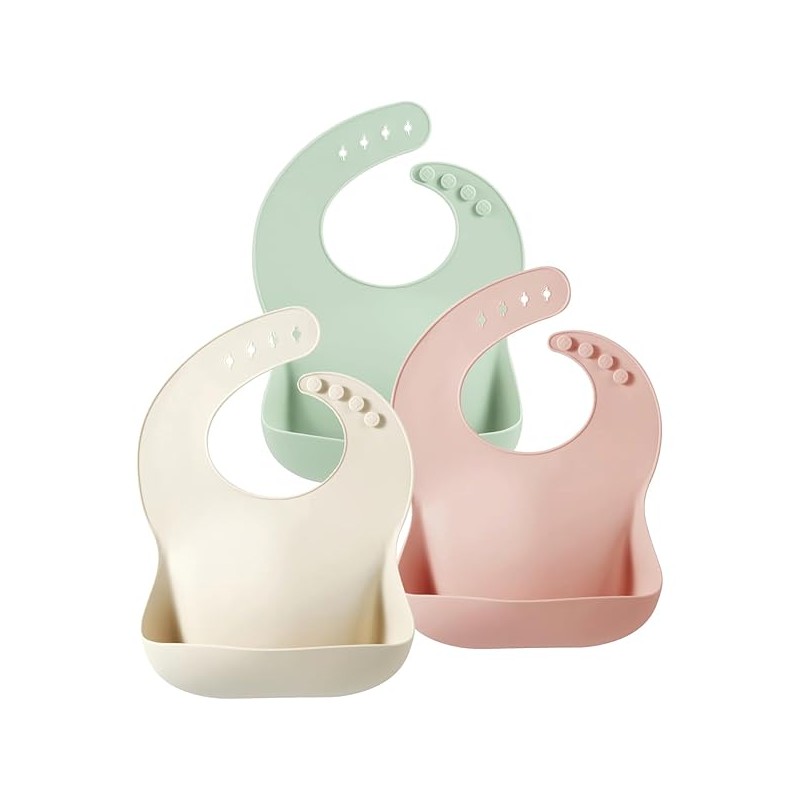 PandaEar Silicone Baby Bibs Set of 3 for Toddlers, BPA Free Waterproof Adjustable Feeding Bib with Large Pocket Food Catcher